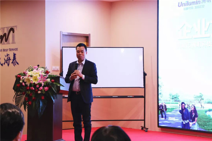 2019年2月23日,洲明集團企業文化培訓會議在濟南召開,洲明集團董事長林洺鋒作為主講嘉賓出席會議,洲明集團景觀委主任洲明康利董事長曾廣軍、洲明康利執行董事曾川、洲明集團景觀委副主任劉俊、洲明集團產后投資管理部經理譚粵君、山東照明學會秘書長王勤等領導及洲明康利的全體員工參加了會議,洲明康利總裁王崇彩主持了本次會議。